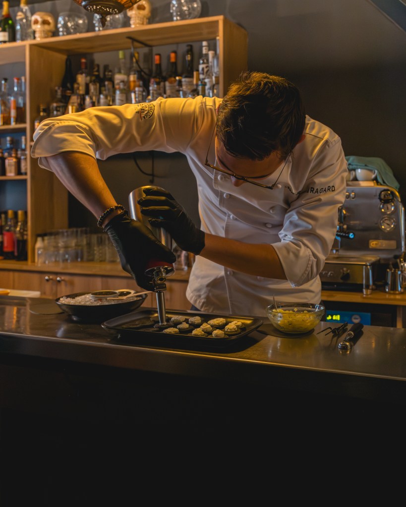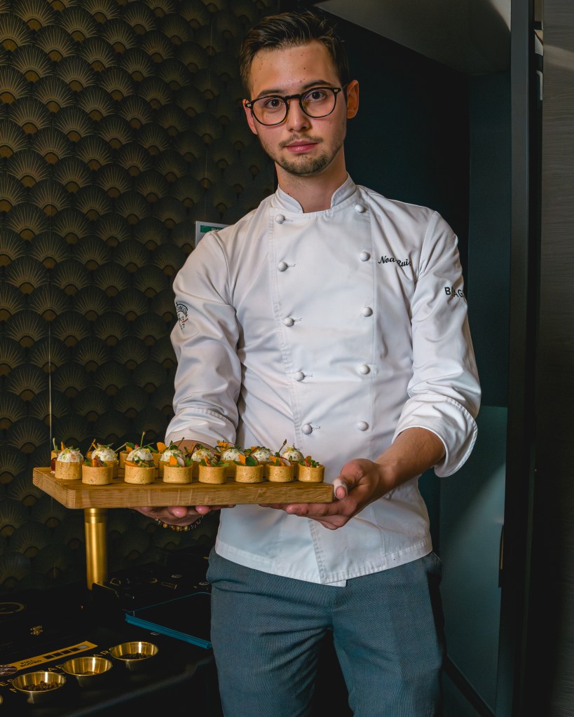 Noa Ruiz a développé sa passion pour la cuisine dès son plus jeune âge et a décidé d’en faire sa profession. Il a suivi un long apprentissage auprès de grands chefs tels que des Meilleurs Ouvriers de France à Aix-les-Bains chez Julien Denjean et au Millennium à Crissier avec le chef Fabien Foare. Il a également travaillé dans des restaurants gastronomiques tels que le Fantin Latour 1 étoile au Guide Michelin sous la direction de Stéphane Froidevaux. Fort de ces expériences, il a fondé une entreprise de traiteur indépendante qui propose une cuisine raffinée, moderne et créative.