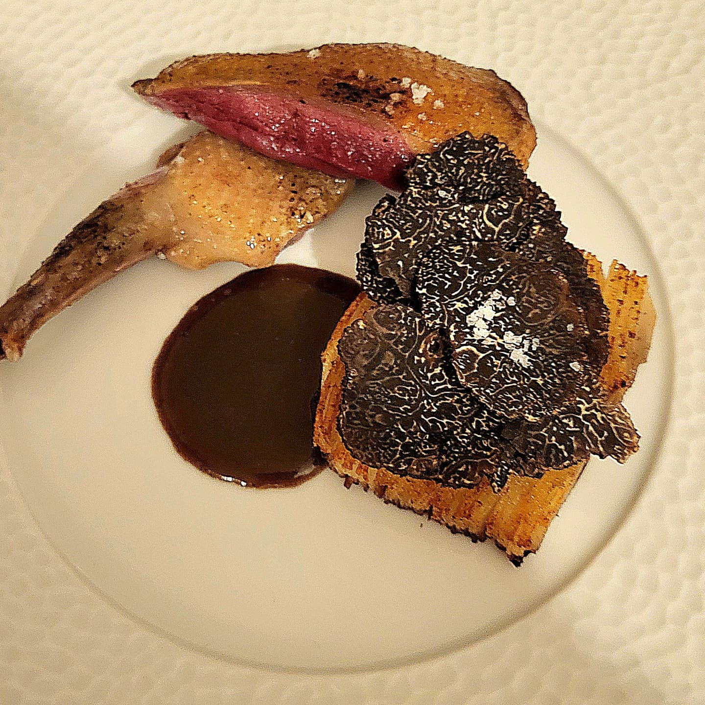 Mises en Bouche, Deux Entrée, Un Plat, Fromage, Dessert.